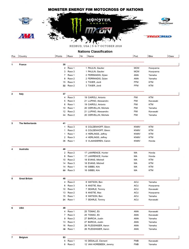 2018モトクロスオブネイションズ結果